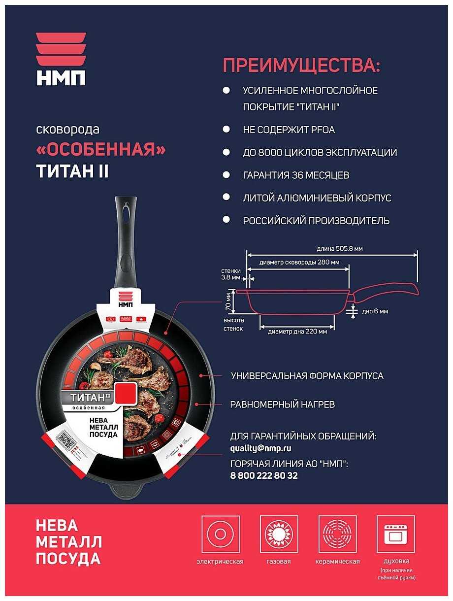 | Дополнительная информация : | керамическая система ТитанПК II увеличивает количество циклов использования сковороды до 8000 раз |