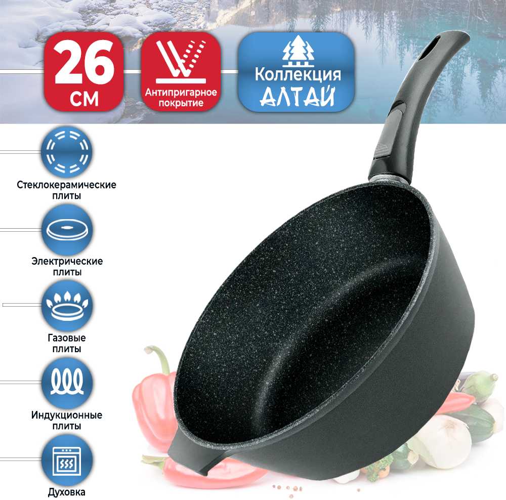 Сотейник НМП Природные минералы Алтай 271326i, 26 см черный