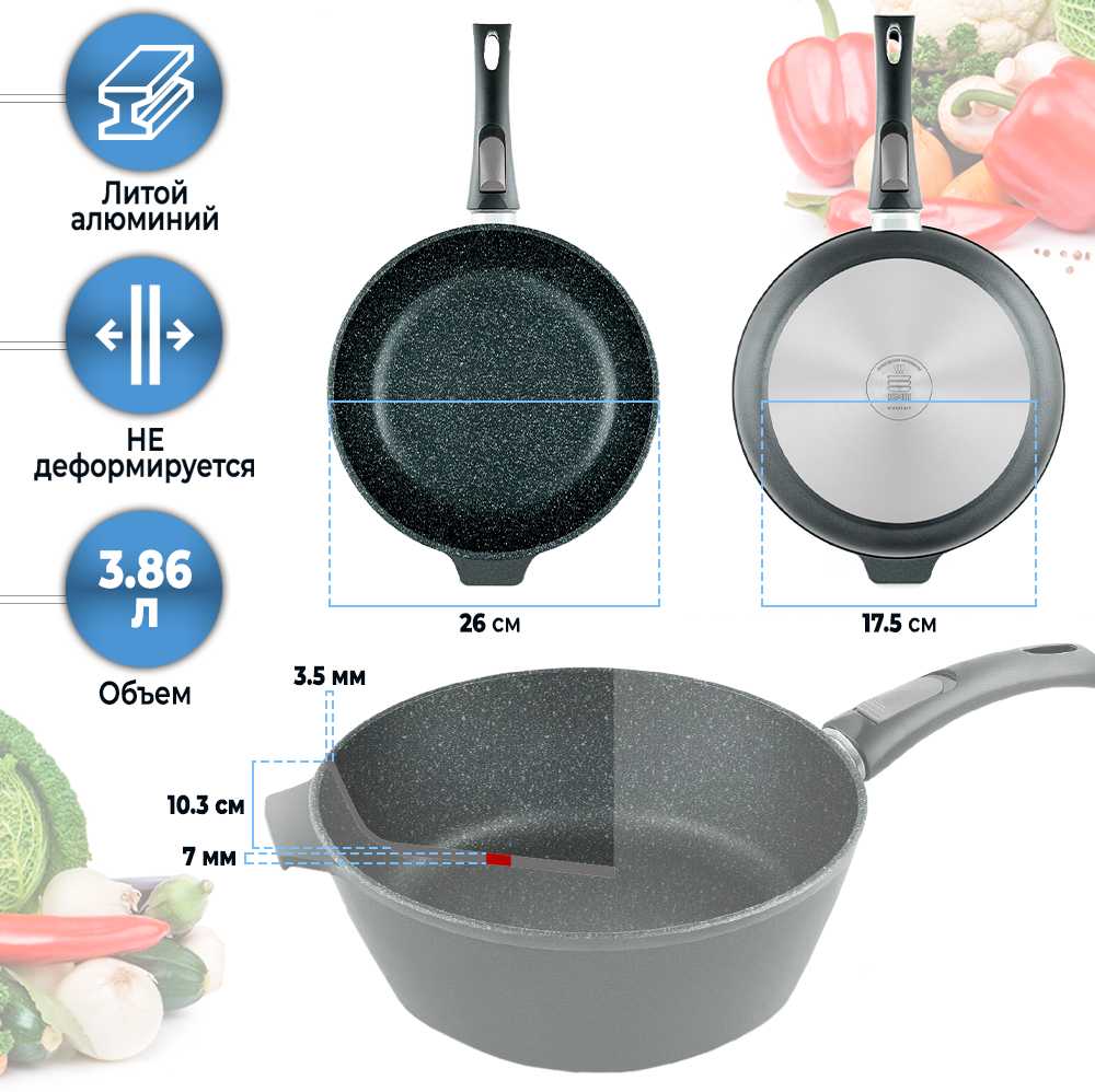 | Особенности : | использование в духовке, мытье в посудомоечной машине, съемная ручка, термоизолированная ручка |