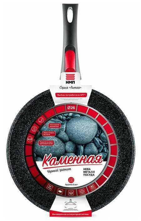 16 отзывов пользователей o НЕВА МЕТАЛЛ ПОСУДА Сковорода НМП "Каменная" D26 Черный гранит с/р