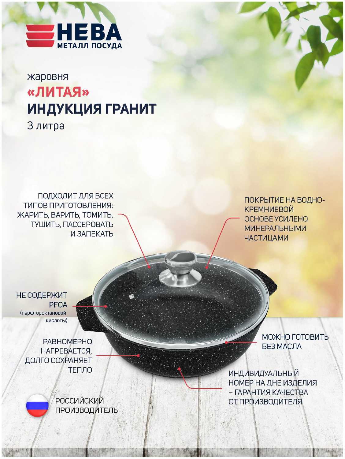Характеристи НЕВА МЕТАЛЛ ПОСУДА Сковорода-жаровня (L186540i)