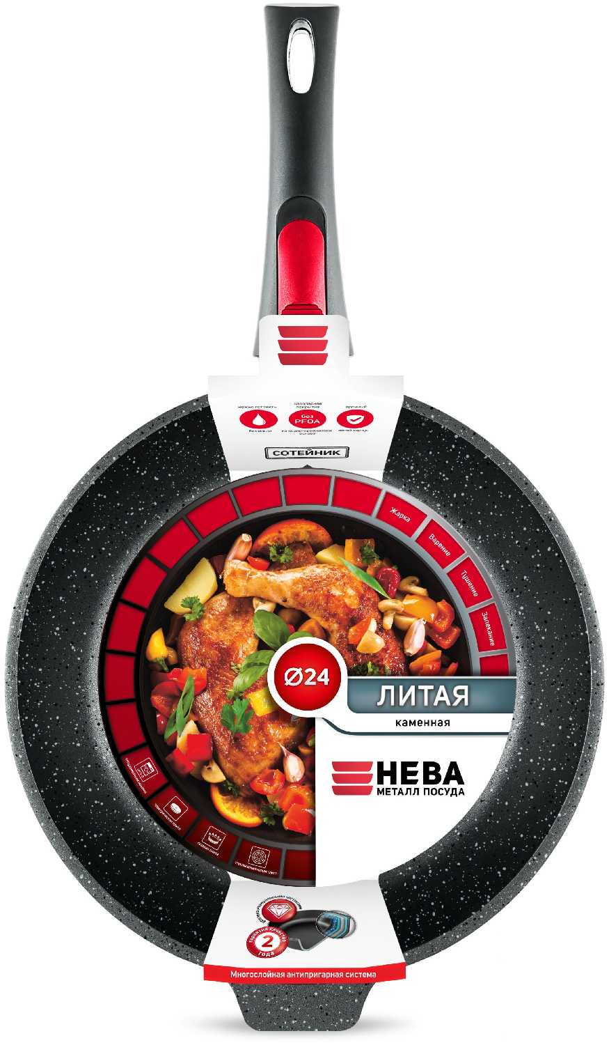 49 отзывов пользователей o НЕВА МЕТАЛЛ ПОСУДА Сотейник 24 высокий "Каменная" Чёрный гранит со съемной ручкой