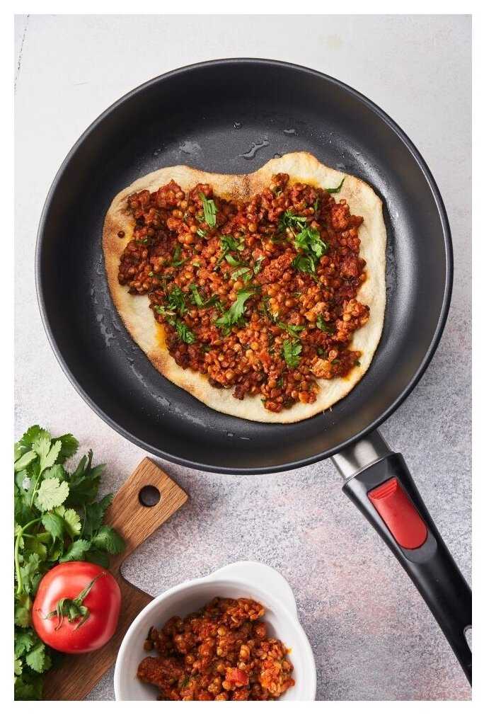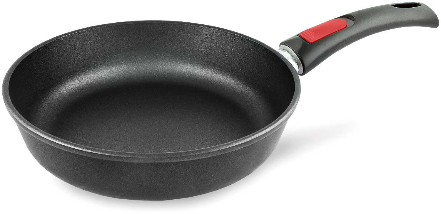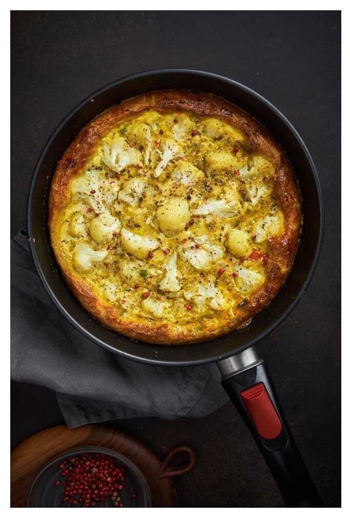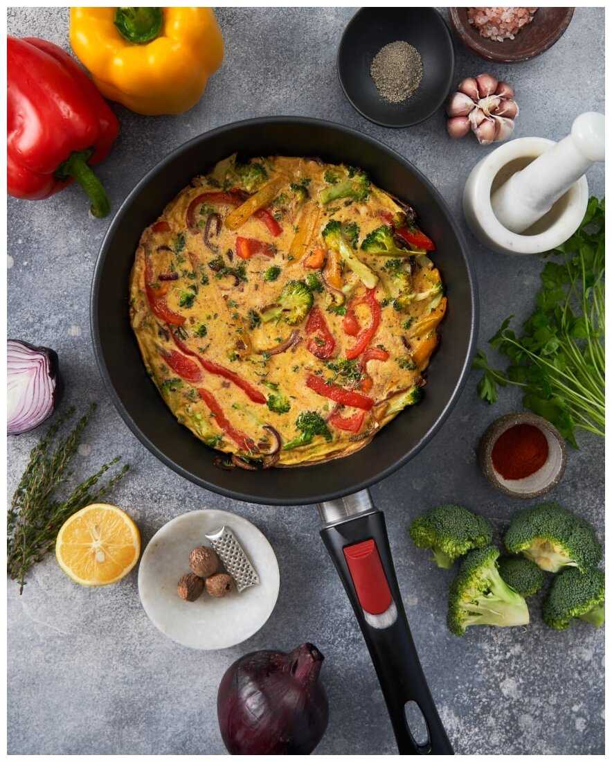 - Ручка легко отсоединяется, что позволяет использовать сковороду в духовке для запекания без перекладывания пищи в другую ёмкость.