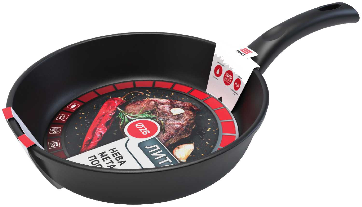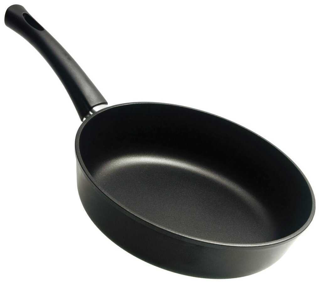 - Высокие борта позволяют использовать сковороду как сотейник для рагу или жарки во фритюре.
