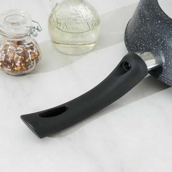 - Цельная приваренная ручка (без заклепок) исключает застревание пищи и упрощает мытьё.