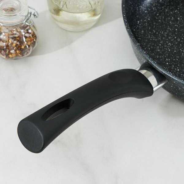 - Удобный баланс веса (1.2–1.5 кг) обеспечивает комфортный перенос даже при заполненной сковороде.