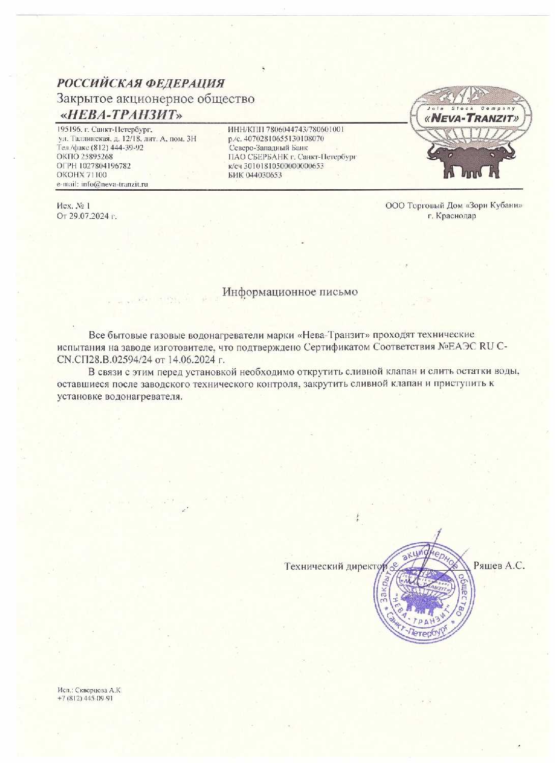 Отзывы о Газовый водонагреватель Нева-Транзит ВПГ 12Е(И)