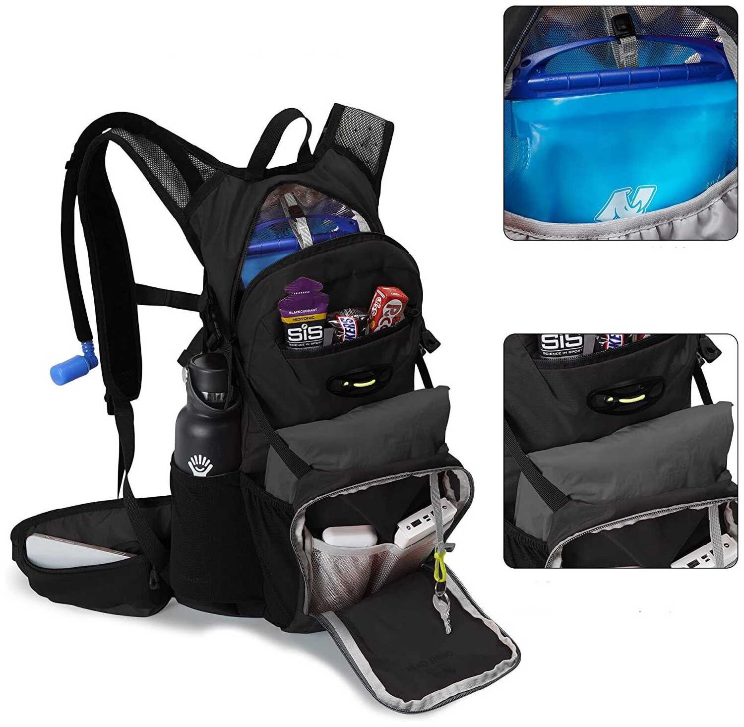 - + Очень удобен для езды на велосипеде. Не сказать что вместительный, но для прогулки на целый день, то что надо. Трёх литровой поилки тоже на день хватает сполна, она ещё и не плохо держит холод. Ремни на своих местах, регулировки супер, так что рюкзак становится частью тебя самого.