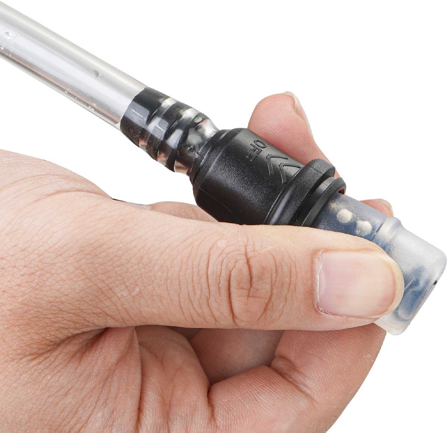 - + Соответствует заявленному объему, не имеет резкого запаха пластика, качественное соединение трубки.