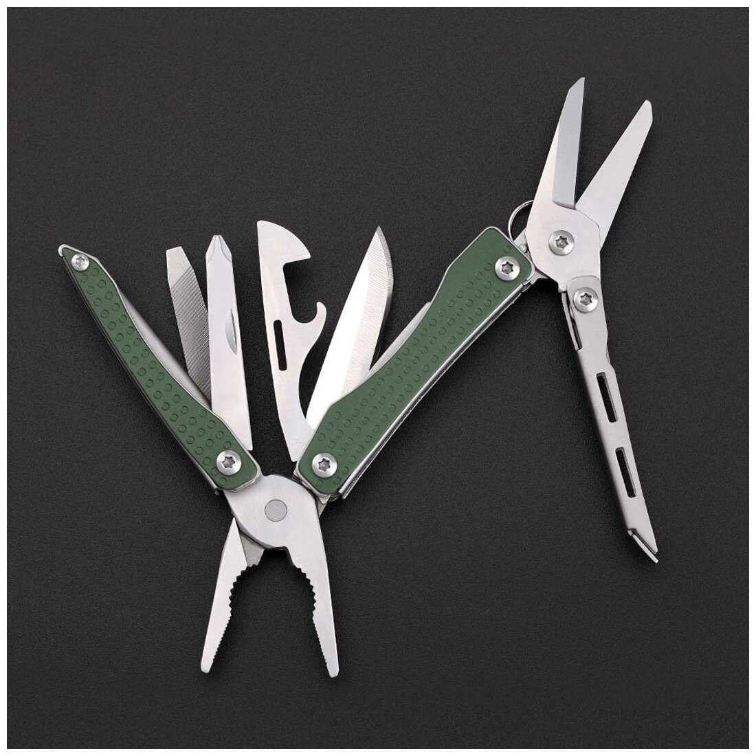 - + маленький, удобный, плоскогубцы, ножницы, отвертка, открывалка, пилка, нож