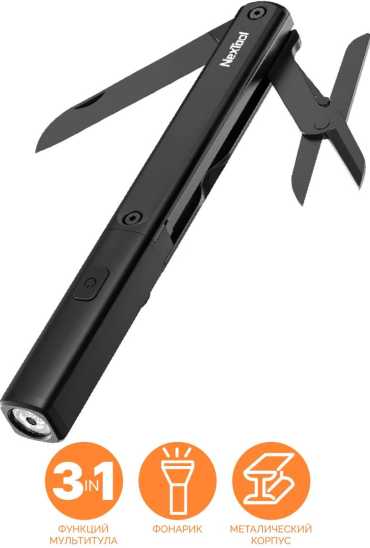 - + Компактный мультитул с фонариком.