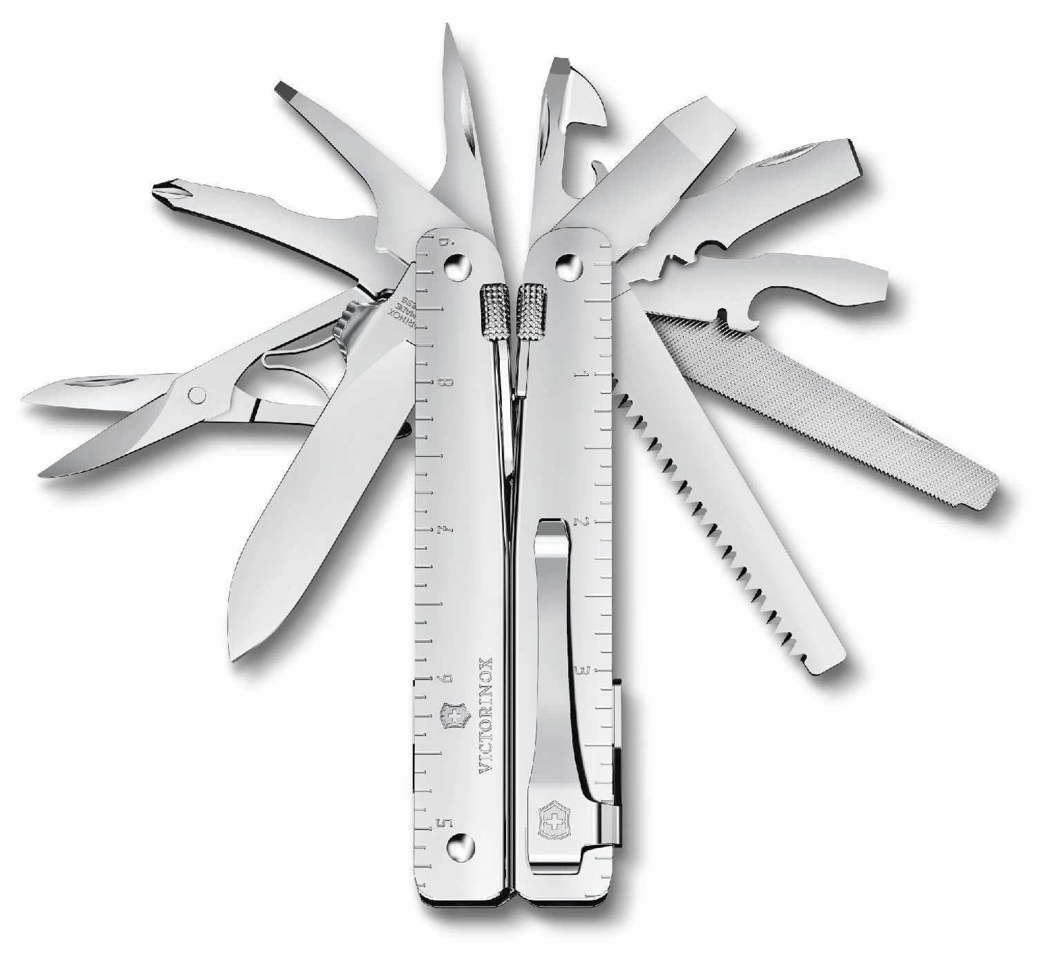 | Инструменты (функции) : | винтовая отвёртка, гаечный ключ, игла, карабин, консервный нож, крючок, кусачки, линейка, напильник, нож, ножницы, огниво, острогубцы, отвертка, открывалка для бутылок, пассатижи, пила, пилка для ногтей, плоскогубцы, сменные биты, стеклобой, шило / кернер, штопор |
