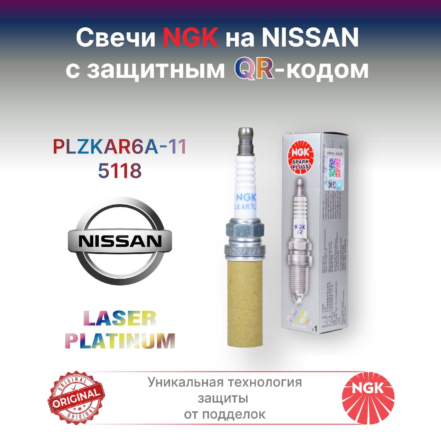Отзывы о Свечи зажигания Ниссан, Рено NGK PLZKAR6A-11/5118/, 91136/V-Line 51/VL5. С защитным QR-кодом. Оригинал. Япония