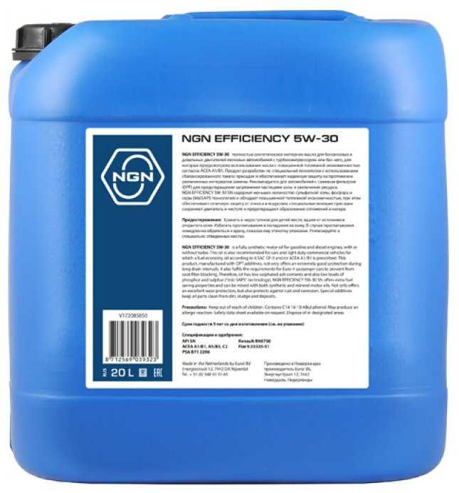 Обзоры и руководства на NGN Efficiency 5W-30