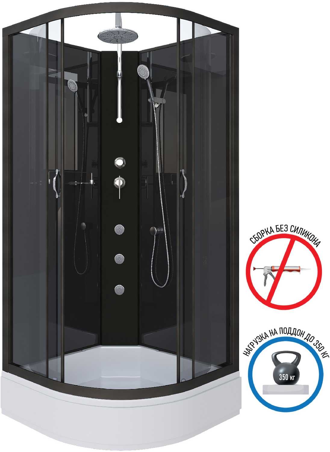 - форма поддона: четверть круга
