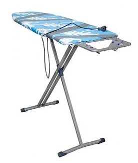 - + широкая, устойчивая, мобильная, розетка встроенная,отличный чехол, есть подставка под утюг и рукавная платформа в комплекте