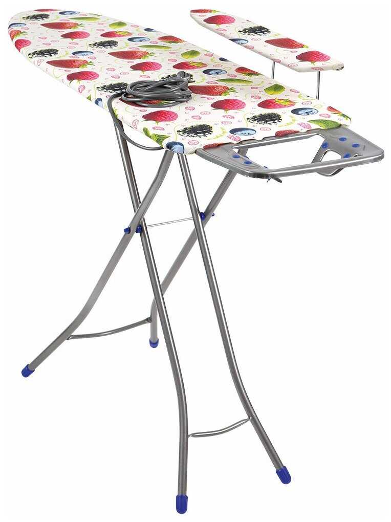 доска не очень устойчивая из за формы основания ножек. шнур удлинителя очень короткий - от вилки до центра розетки 150 см, вместо заявленных 160 см. у меня у утюга шнур 3 метра, можно было брать и без удлинителя, дешевле бы вышло