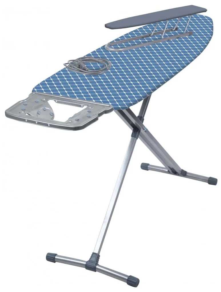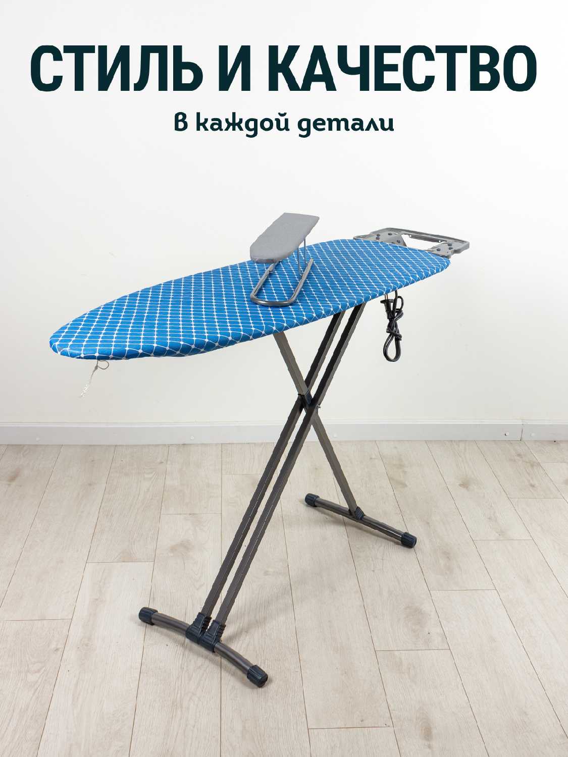 - + устойчивая доска, удобный размер, хорошо регулируется по высоте, качественный чехол, удачная подставка для утюга. Ничего лишнего!