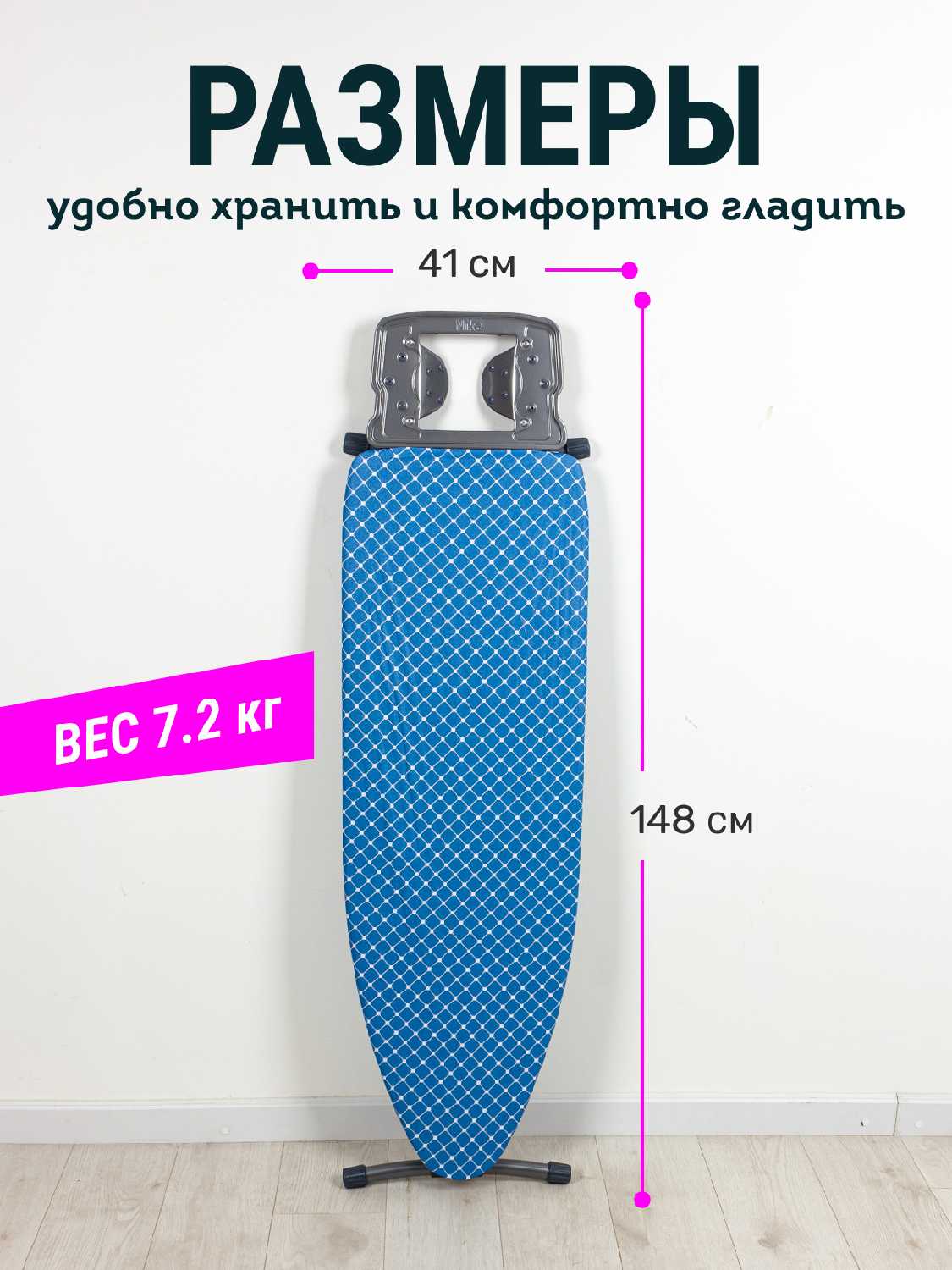 Вес около 4-5 кг делает доску лёгкой для самостоятельной переноски, даже из магазина домой, — многие женщины хвалят это за мобильность. По сравнению с деревянными, она легче, но устойчивее за счёт металла. Минус — при складывании может сбиваться высота. Для холостяков или маленьких квартир это идеальный баланс веса и прочности.