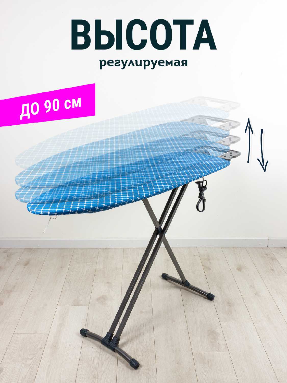 Максимальная высота до 90 см позволяет высоким пользователям (свыше 170 см) гладить стоя в полный рост, не напрягая спину, — это частый плюс в отзывах от людей с таким ростом. Регулировка плавная, но для очень высоких может быть чуть низковата на максимуме. По сравнению с низкими столами, разница огромная, как "небо и земля". Для семей с разным ростом это универсальный вариант. -