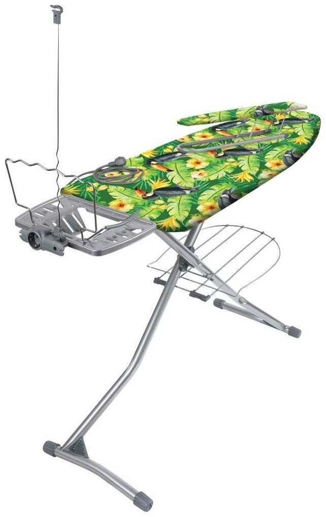 - Подрукавник и перекладина для вешалок позволяют гладить рукава и развешивать вещи, что делает процесс комфортным.