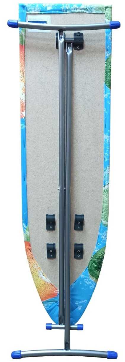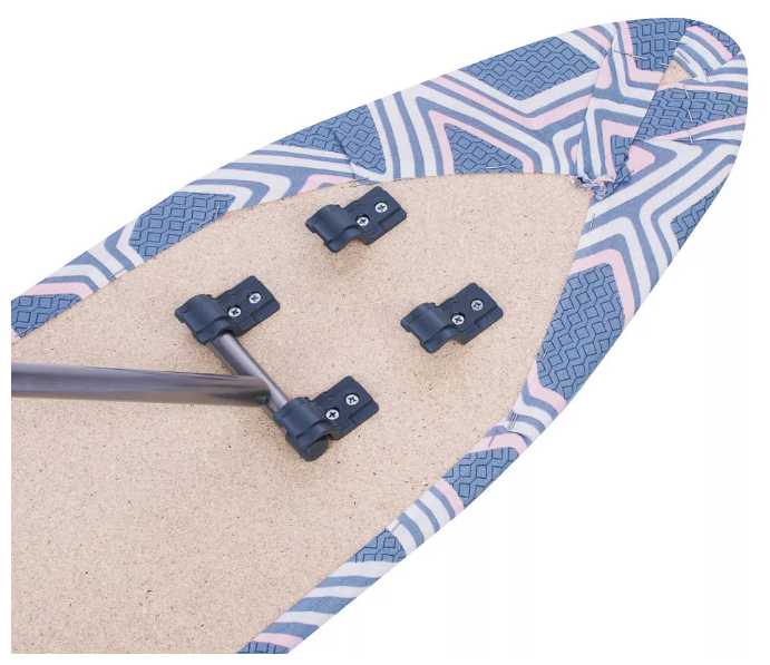 - Интуитивный механизм фиксации ножек (пружинный замок) позволяет разложить доску за 5–7 секунд.