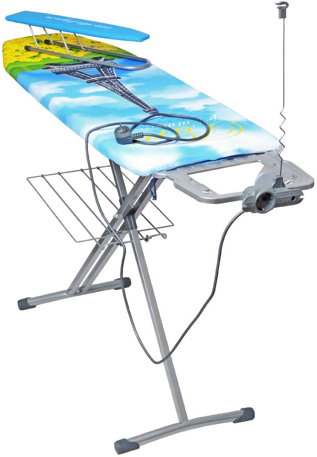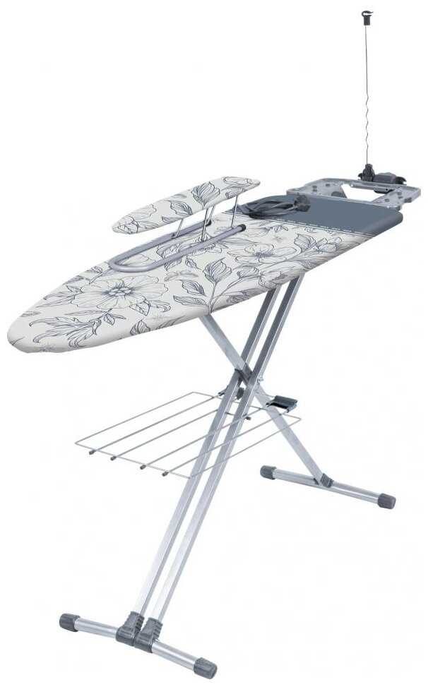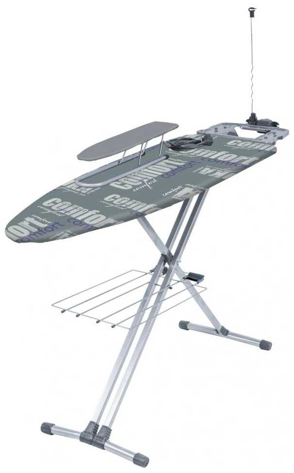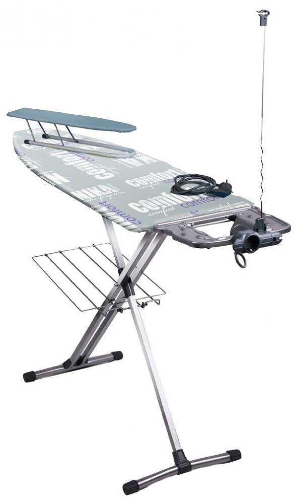 Конкретно у этой модели удобно то, что розетка расположена сбоку, на подставке для утюга, а не снизу, как у большинства досок. И ещё есть поддержка для шнура утюга. Благодаря чему шнур не путается под ногами.