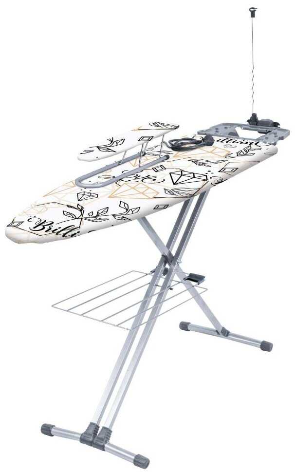- + Регулируется по высоте, достаточные размеры по длине и ширине. Имеется дополнительная полочка, розетка, гибкая штанга и подставка для утюга.