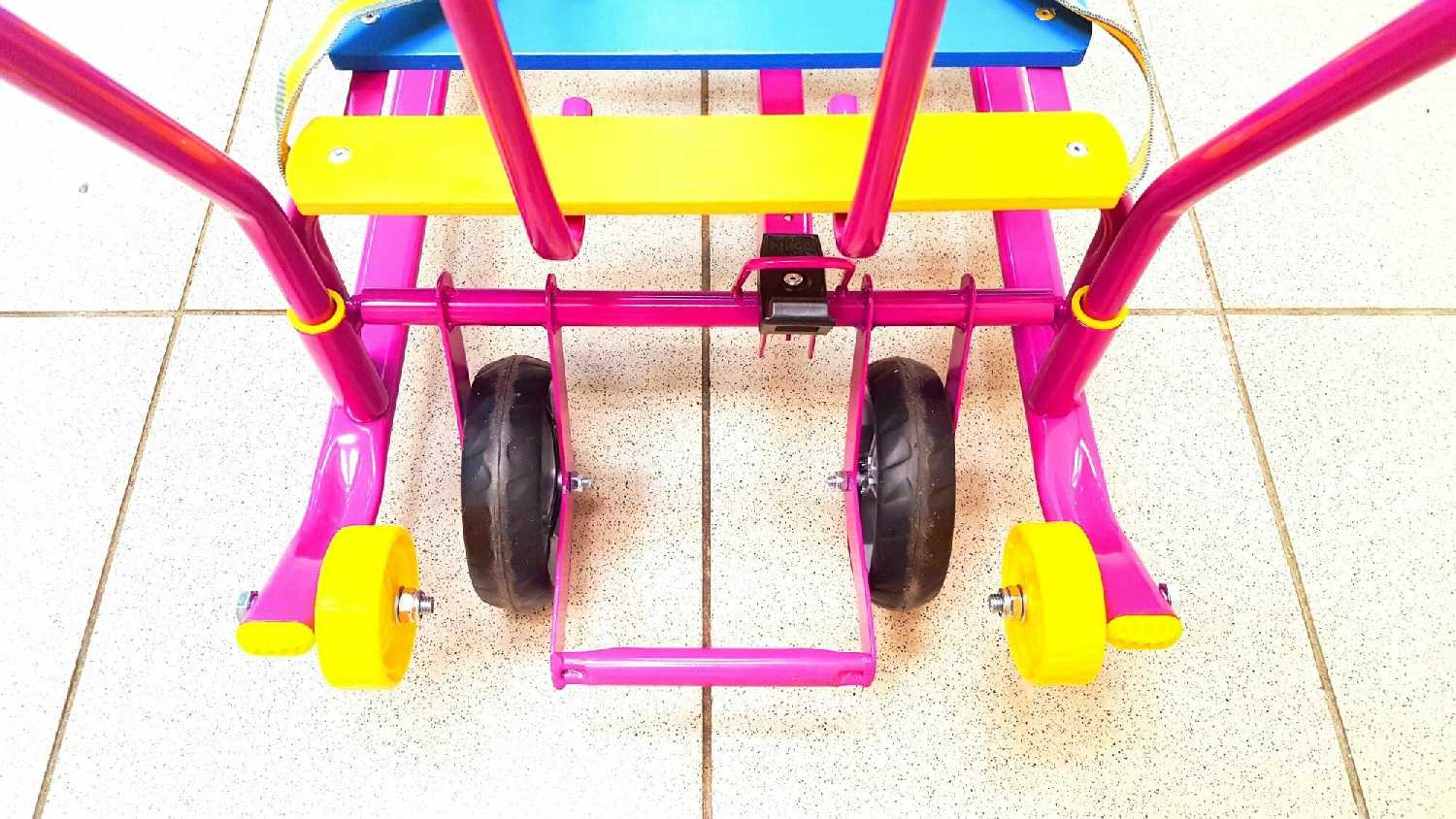 - - Запах бензина или какой то похожей химии от резиновой ручки. Не выветрился почти за год. Запах на всю кладовую. Ручка, высокая которая, за которую родитель везет - постоянно выпадает, чуть не так возьмешь. Механизм опускания/поднимания колес не простой, надо прям сильно постараться. Если вы живете в городе и нужно часто переключать полозья на колеса и обратно, это не самый подходящий вариант