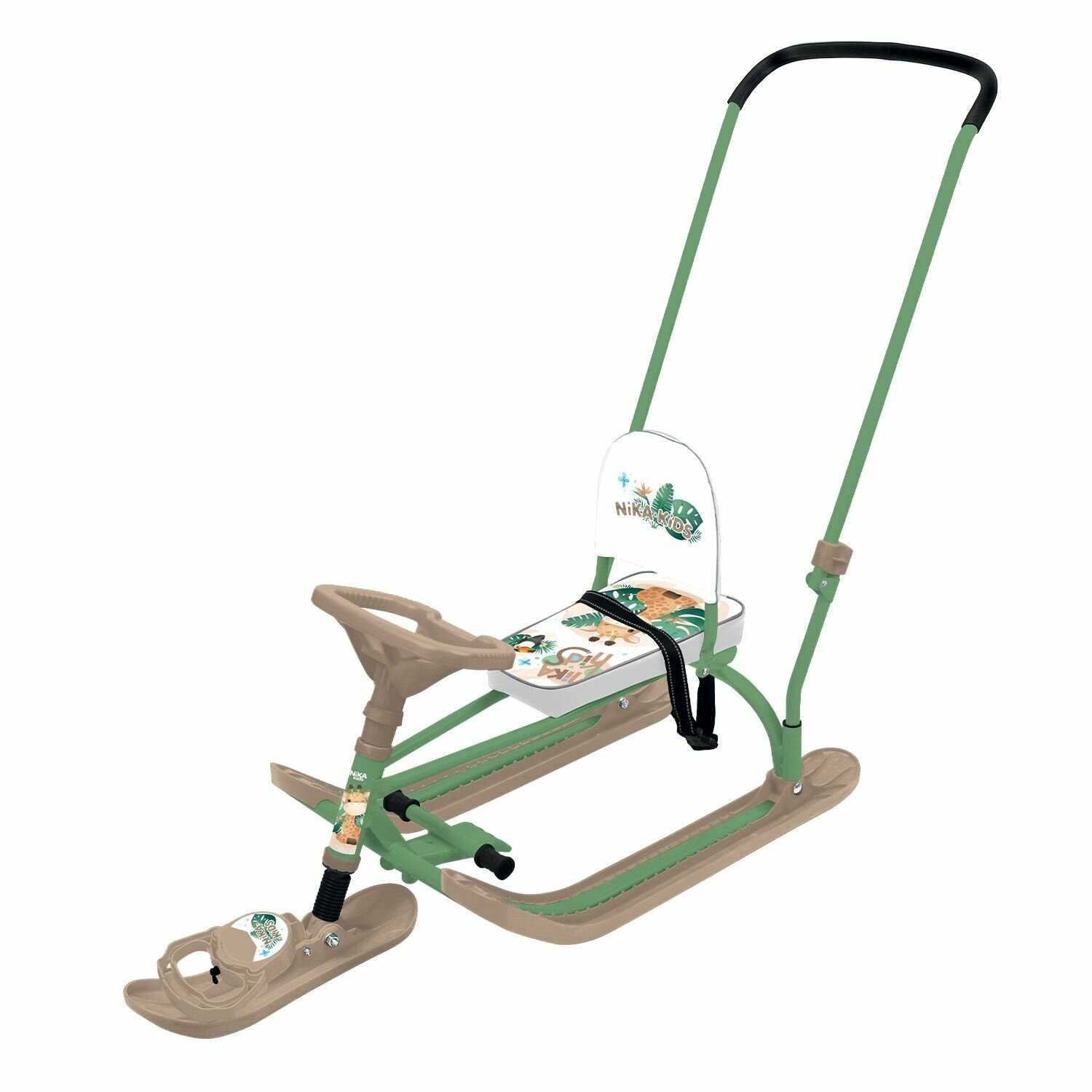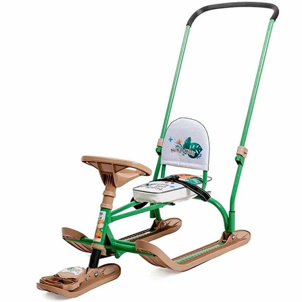 | Подробная комплектация : | металлический каркас, лыжи, сиденье со спинкой, руль, родительская ручка, трос |