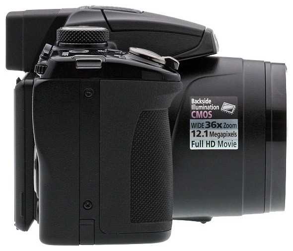 Габариты.Конечно, Nikon Coolpix P500-это не мыльница,которую сунул в карман и пошел.Но и не тяжелая зеркалка, с которой надо носиться как с писаной торбой. Вполне можно взять с собой на пляж,например-не утяжелит намного вашу сумку. И в руках удобно держать.