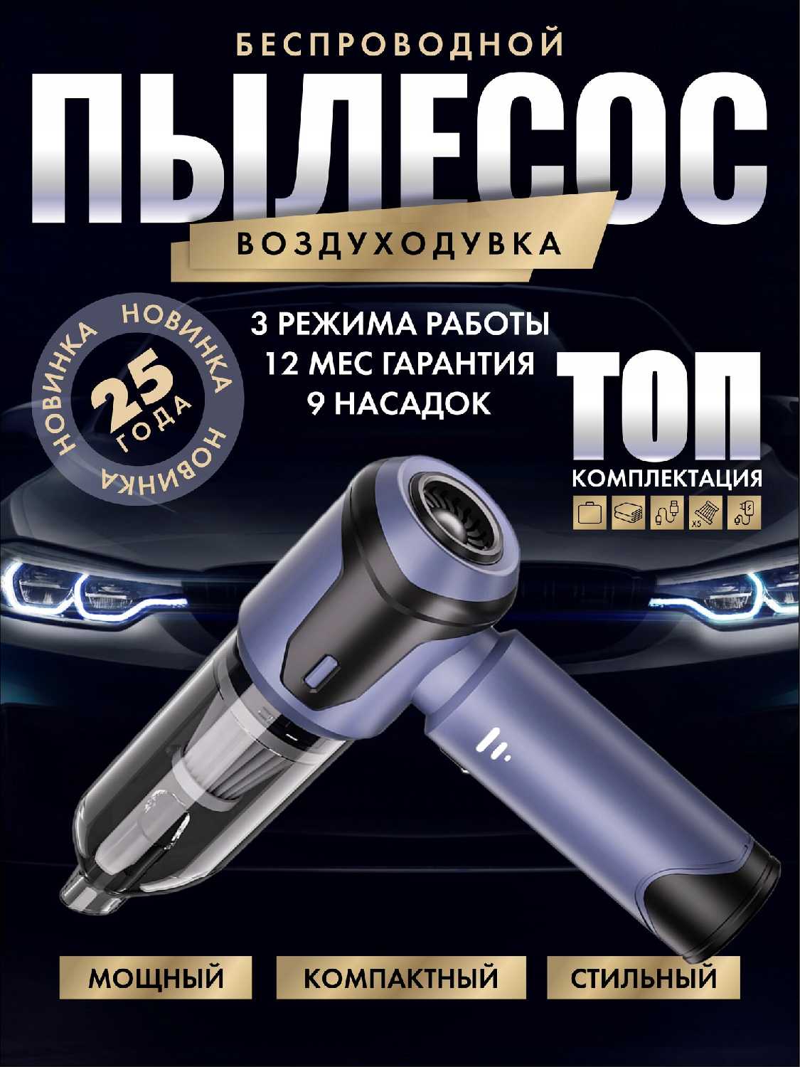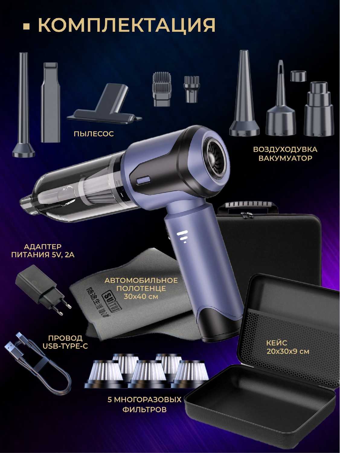 - + Компактный, имеет свой чехол, досточно мощный для своих размеров, в наборе 5 многоразовых фильтров, удобные щетки, и тряпочка для машины - отдельная 🫶🏼