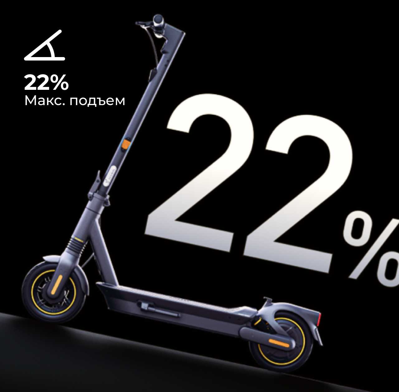 - Широкая дека (19 см) и регулируемый руль подходят для водителей ростом до 190 см.