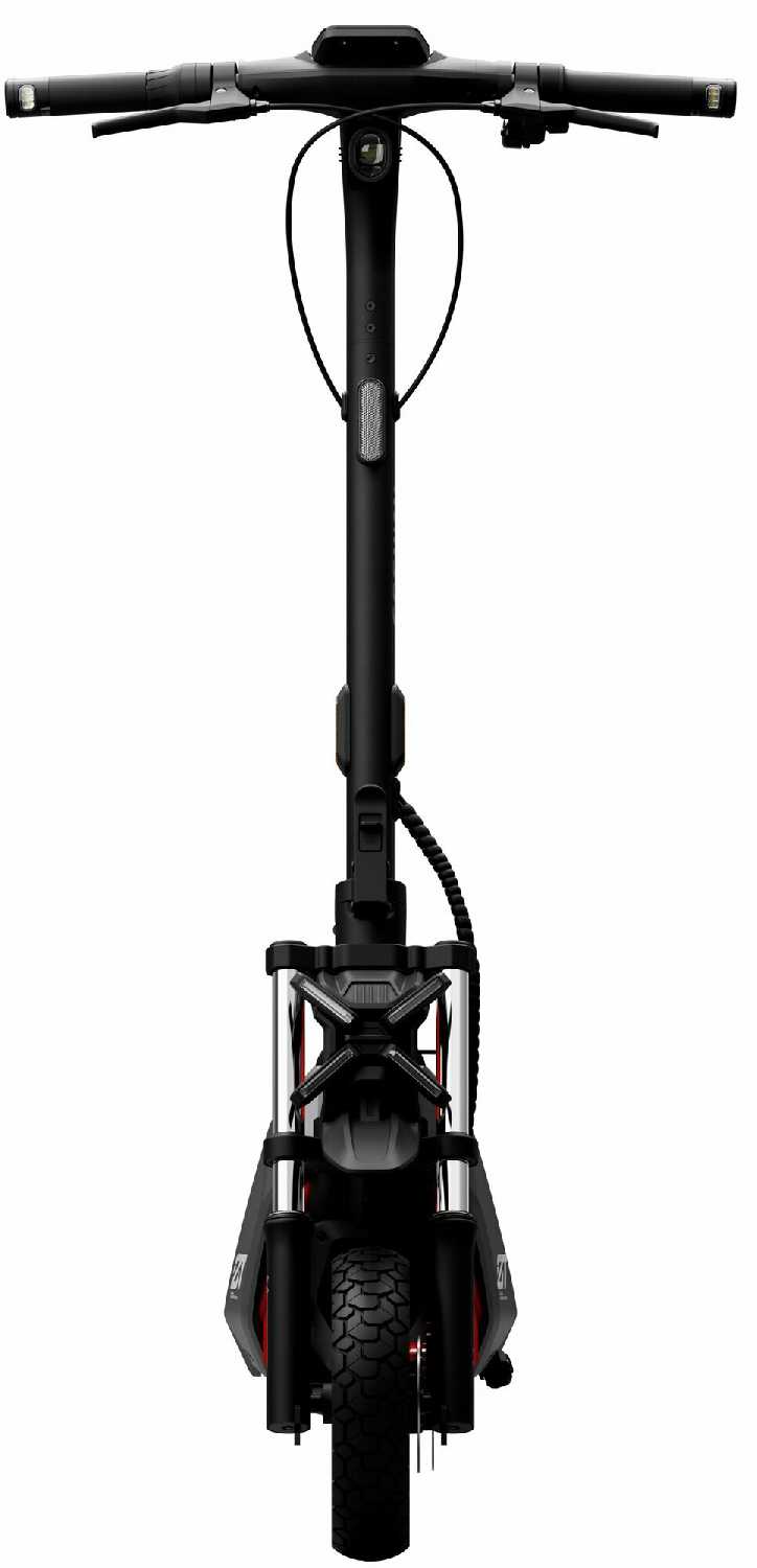 - Дисковый механический тормоз спереди и рекуперативный электротормоз сзади обеспечивают короткий тормозной путь и контроль на скоростях до 25 км/ч.