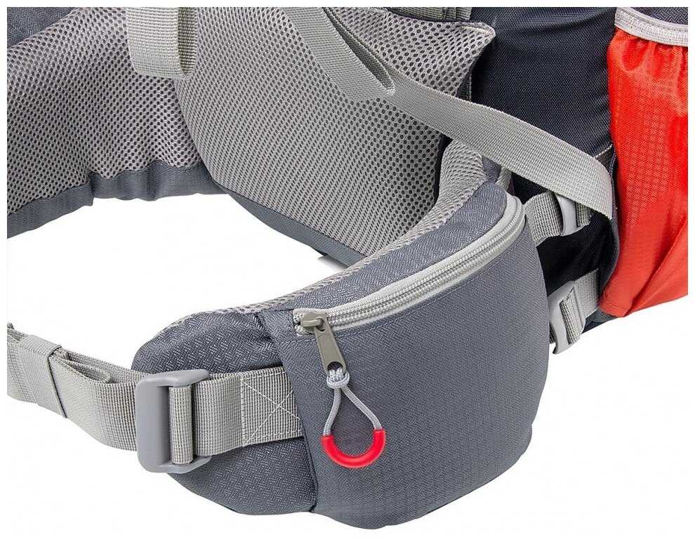 - + Поясной фастекс держит хорошо, спина, если правильно укладывать - тоже. Объем солидный (для горного похода - предел), очень здорово, что есть накидка для рюкзака и карманы. Супер здорово, что есть возможность открыть снизу. Рюкзак очень лёгкий для своей категории.