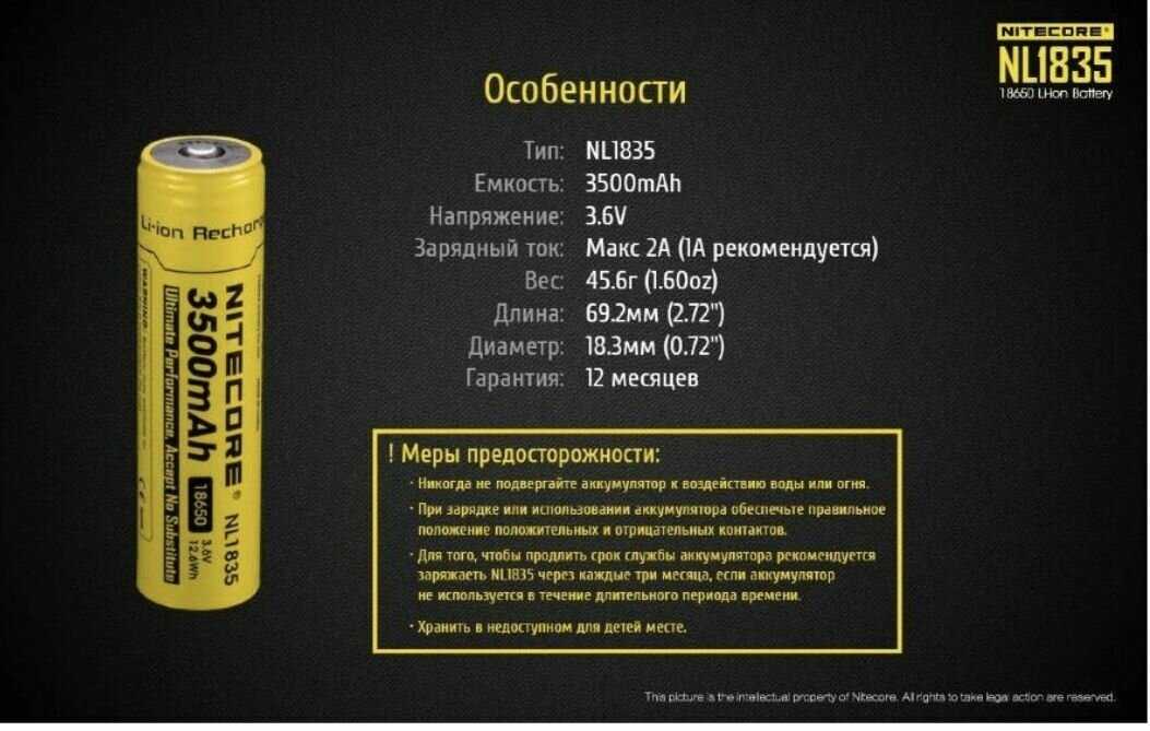 48 отзывов пользователей o Nitecore NL1835 (18650)