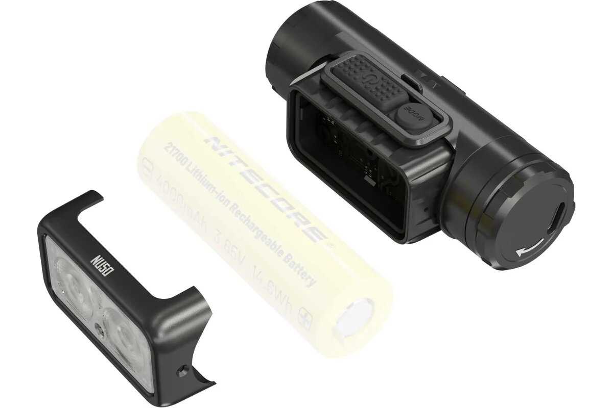 Передняя часть корпуса выполнена из алюминия, что обеспечивает эффективный теплоотвод на высоких режимах, остальные компоненты — из качественного пластика. Пользователи отмечают продуманную конструкцию с силиконовой полосой на ремне и светоотражающими элементами. Критичные замечания касаются пластикового фиксатора для кепки, который может деформироваться при частом использовании. Общее впечатление от сборки — добротное и сбалансированное, хотя некоторые элементы выглядят хлипковато. -