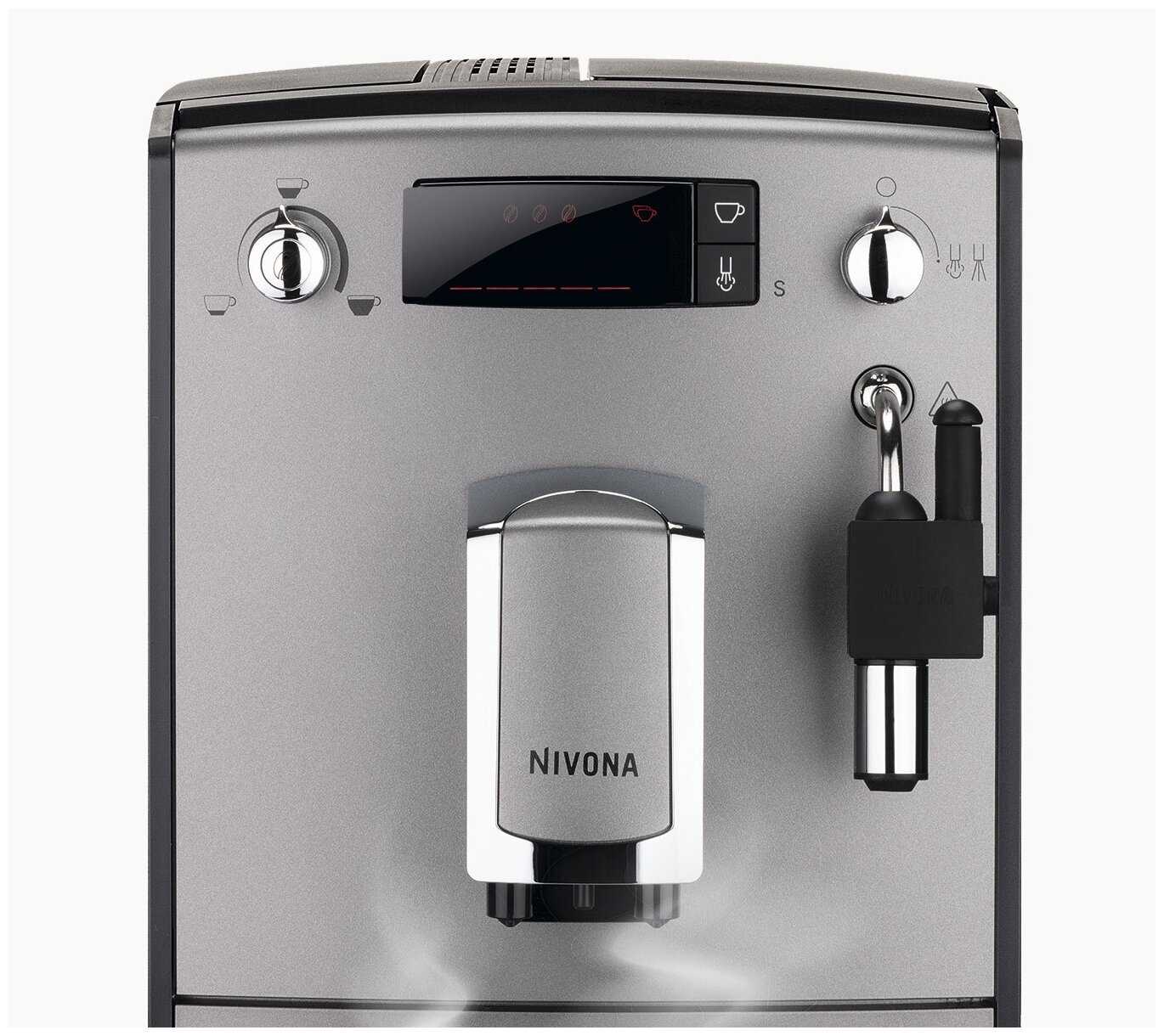 Кофемашина автоматическая Nivona Cafe Romatica NICR 525 серый, компактная, простая в эксплуатации. Кофе получается очень вкусный. Удобная регулировка крепости и порции напитка. Капучинатор хоть и не автоматический, но всё что потребуется, опустить трубочку в ёмкость с молоком, нажать кнопку пар и после того как на дисплее появится значок "капучинатор" повернуть регулятор на взбивание. Количество взбиваемого молока регулируете сами. Весь процесс приготовления Латте занимает не более 2 минут. Что очень важно, кофе получается горячим. Очень удобно, что варочный блок вытаскивается, и за ним легко ухаживать. Ещё большим плюсом послужило, что сборка Португалия.