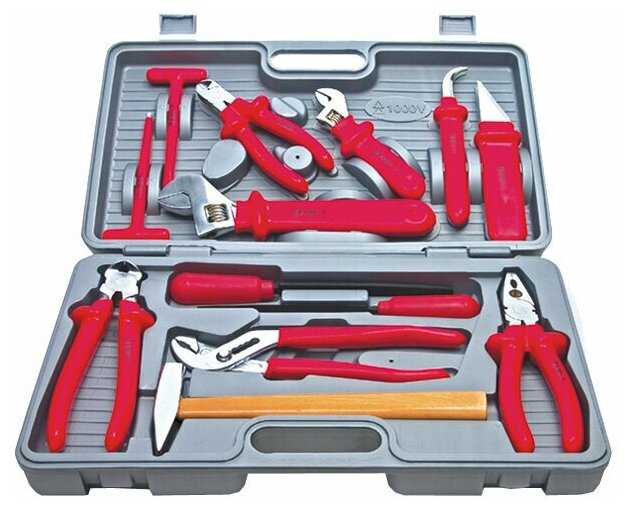| Инструменты в комплекте : | бокорезы, клещи, клещи переставные, ключ разводной, ключи гаечные, ключи торцевые, кусачки, молоток, напильник по металлу, отвёртки, пассатижи, плоскогубцы |