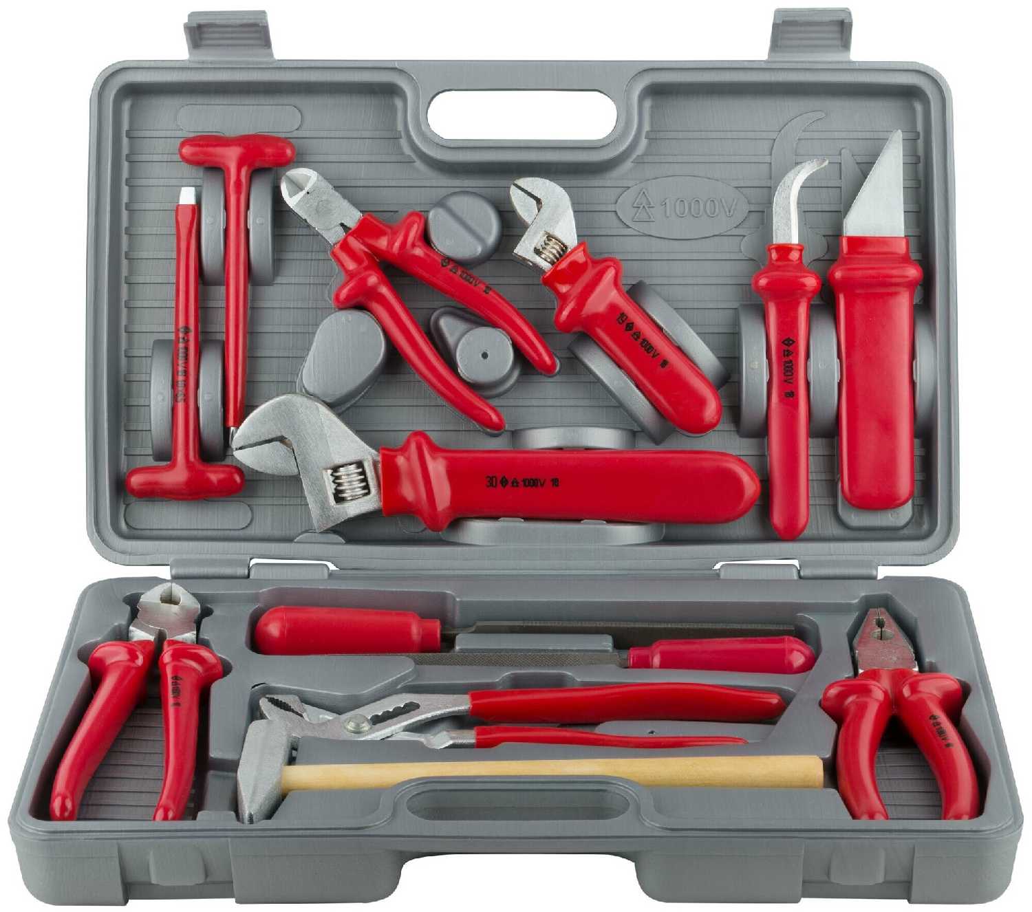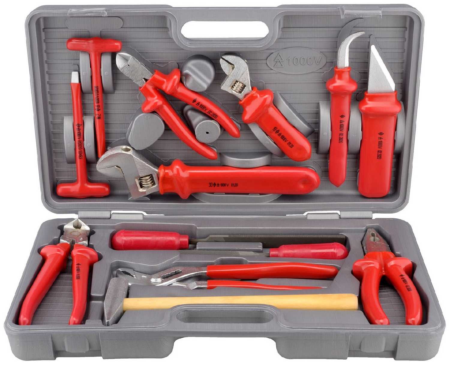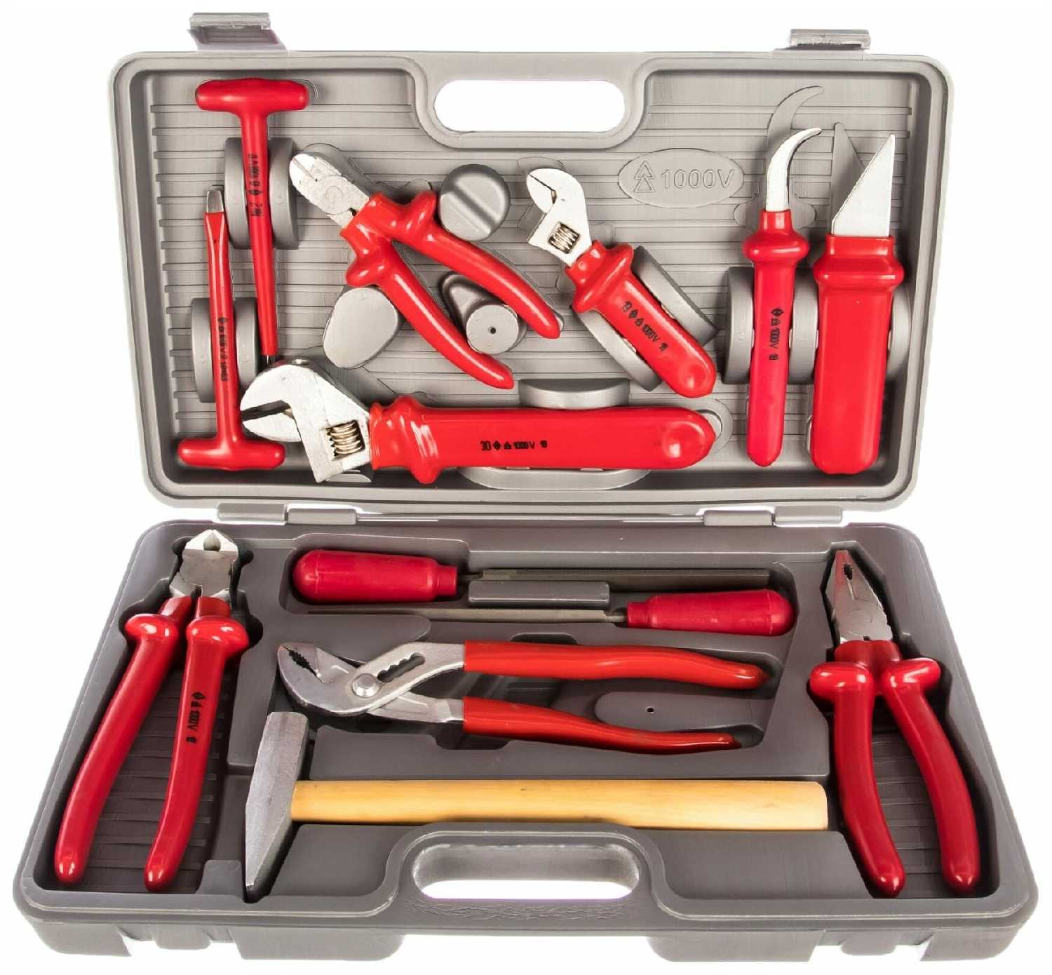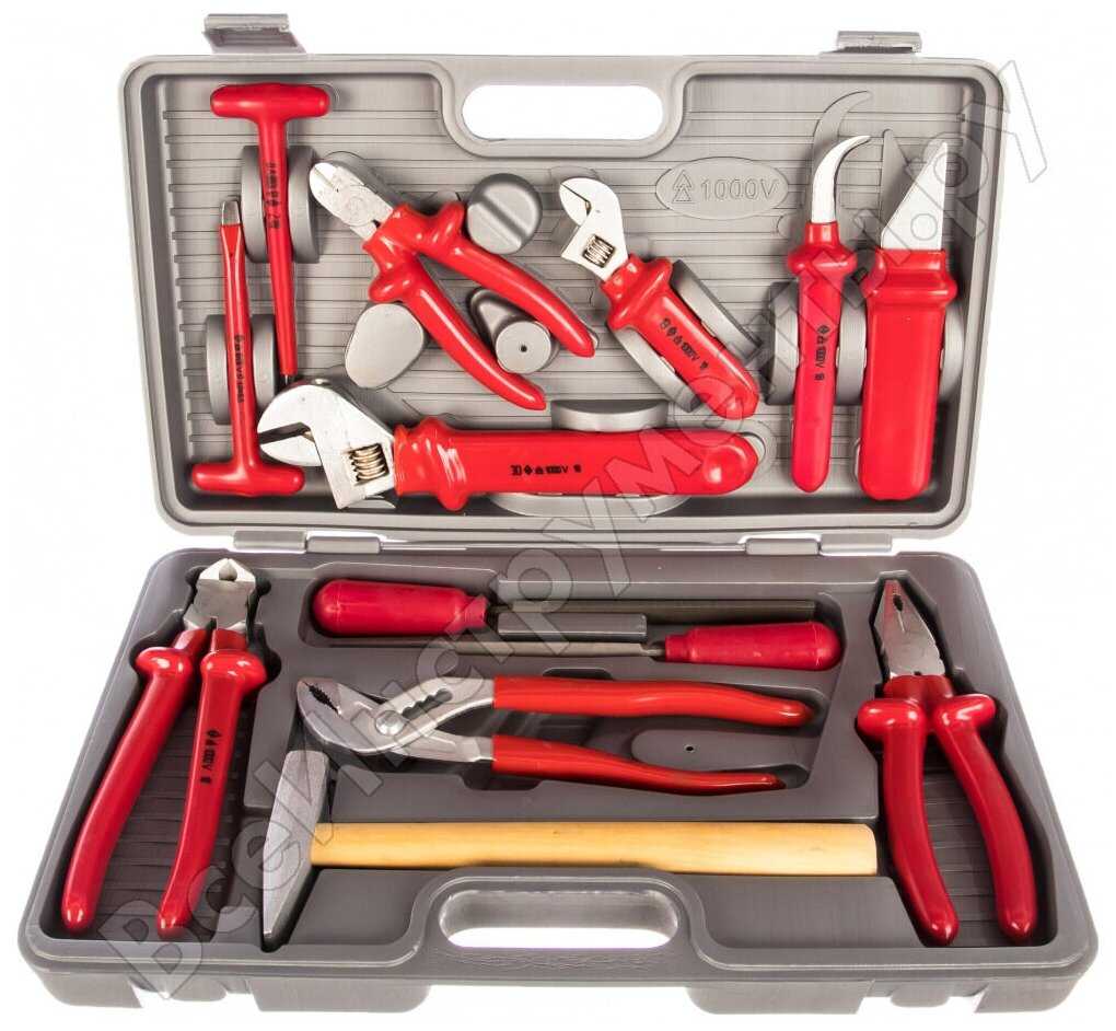 - + Хороший прочный кейс. Металл прочный. Хороший набор для электро-работ, есть и другие комплектации.