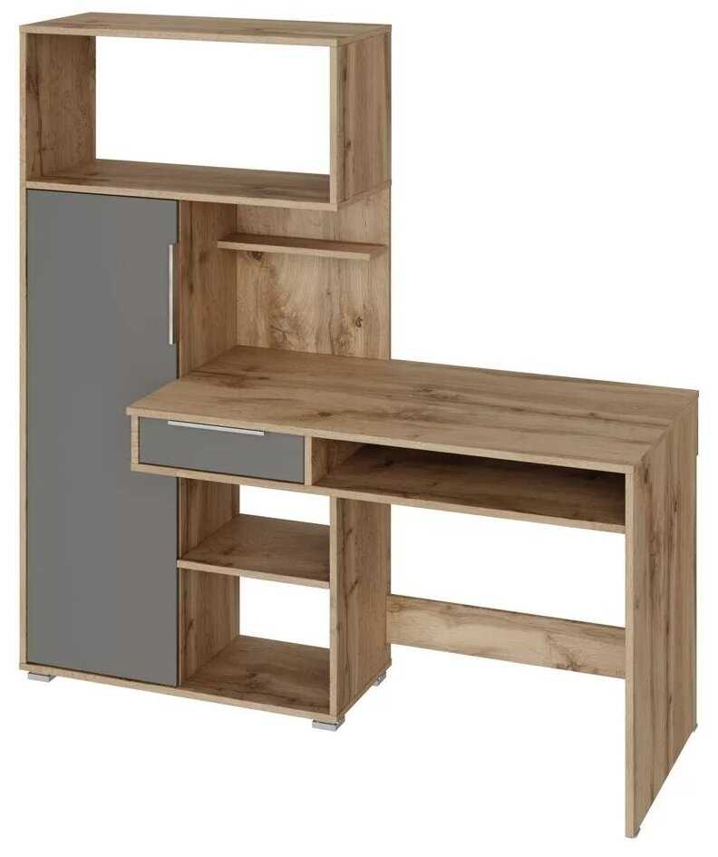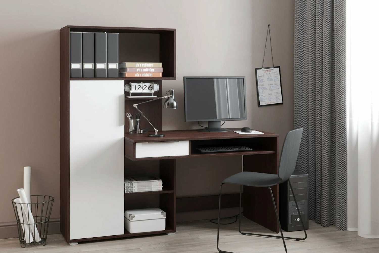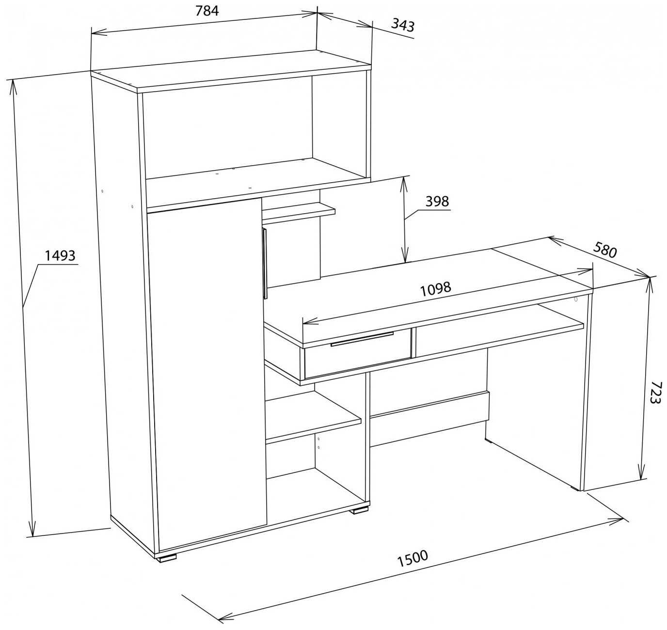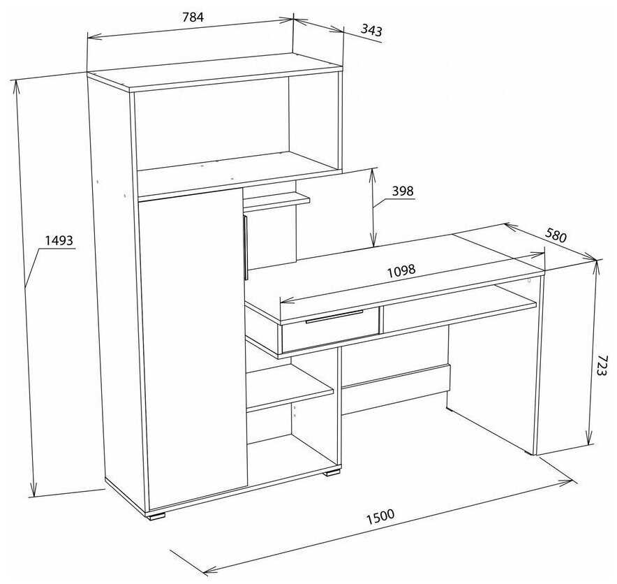 - + Удобно сидеть за столом: ноутбук стоит и место перед ним достаточно места для письма. Смотриться в комнате хорошо, красиво. И ящик есть и полки и шкафчик. Это слева. Очень удобно. Мы любуемся. Собирали сами, неспеша 4 часа. Брака не было, комплектация полная. Упаковка крепкая. Только Фурнитура для двери дешевая. Пока дверь регулировали, под один винт резьба сорвалась.