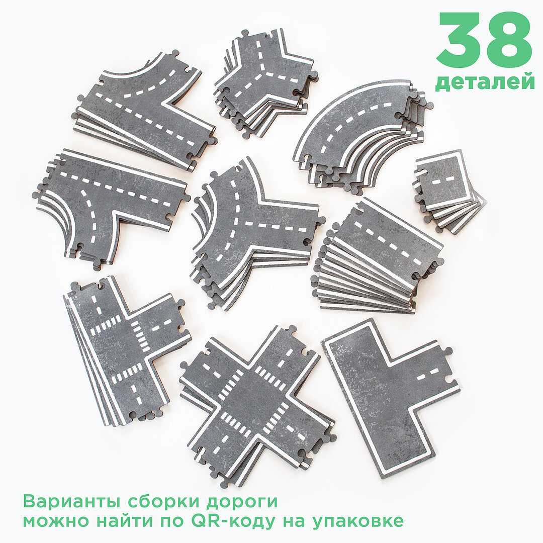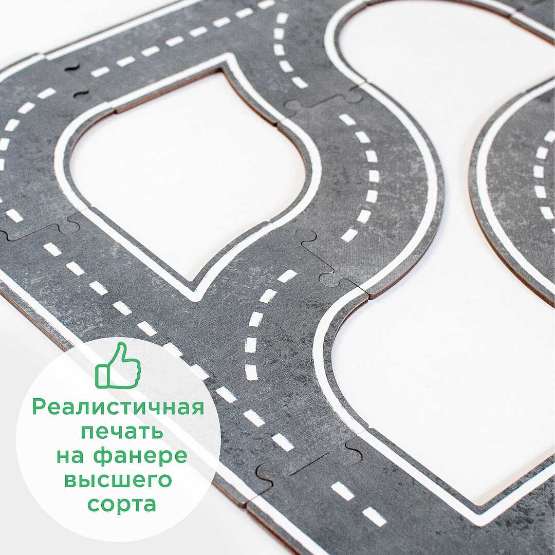 Очень качественно сделана, до купили еще гараж с дорогой, получается миллион комбинаций. Но есть пазлы, которые не особо стыкуются с другими. В целом, рекомендую. Ребёнок собирает сам и катает машинки по ней.