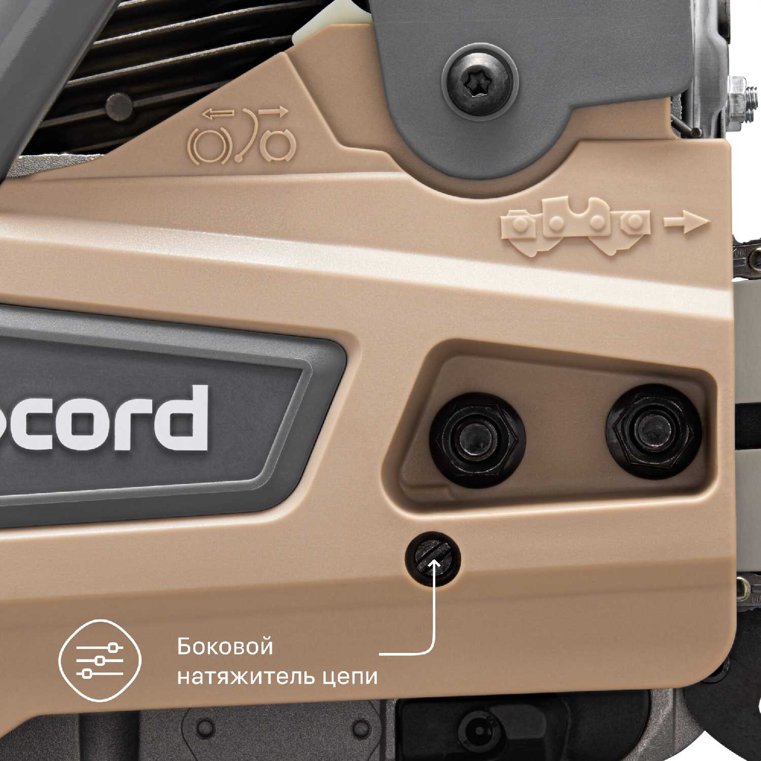 Ключ для свечи зажигания встроен в корпус рукояти – это исключает его потерю. Однако некоторые пользователи отмечали трудности с его поиском при первом использовании. Натяжитель цепи расположен сбоку, но его механизм требует аккуратного обращения. -