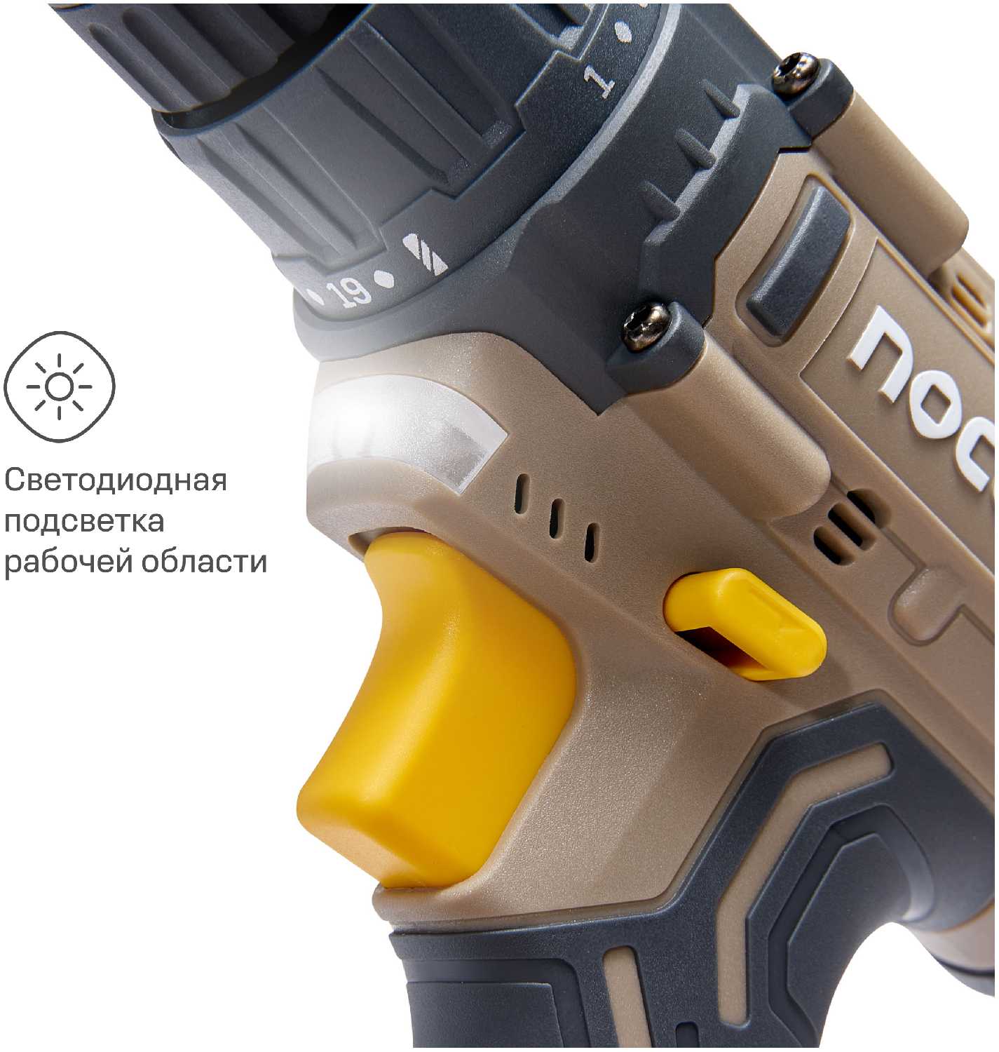 Стандартные фичи — быстрозажимной патрон, мгновенная остановка, подсветка.