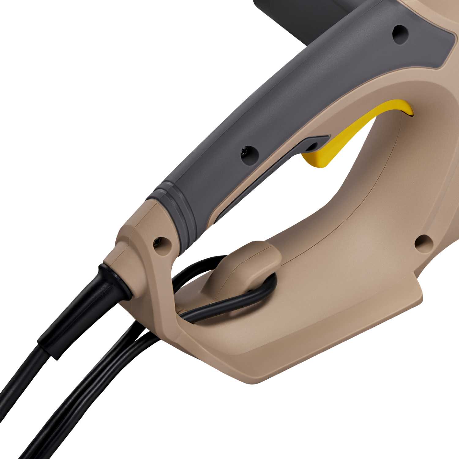 Главный недостаток — короткий штатный шнур, требующий удлинителя. Контроль кабеля во время пиления на высоте или в зарослях может отвлекать. Пользователи рекомендуют использовать жёсткие удлинители с надёжной изоляцией. -