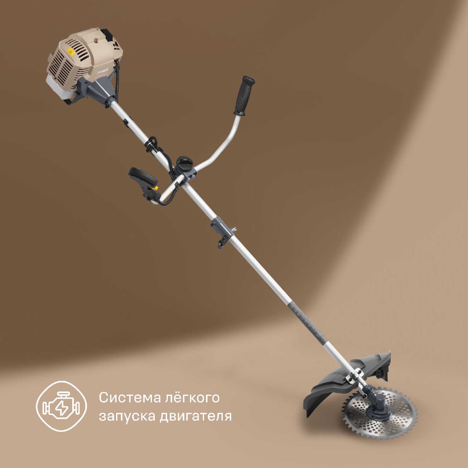 Двигатель демонстрирует высокую производительность: легко справляется с густой травой, кустарником и даже молодыми деревцами толщиной до 2 см. При обкатке (первые 2-3 заправки) возможны перегрев редуктора и вибрация на максимальных оборотах, но после процедуры работа стабилизируется. Расход топлива экономичен – полного бака хватает на обработку 10–15 соток при средней нагрузке. -
