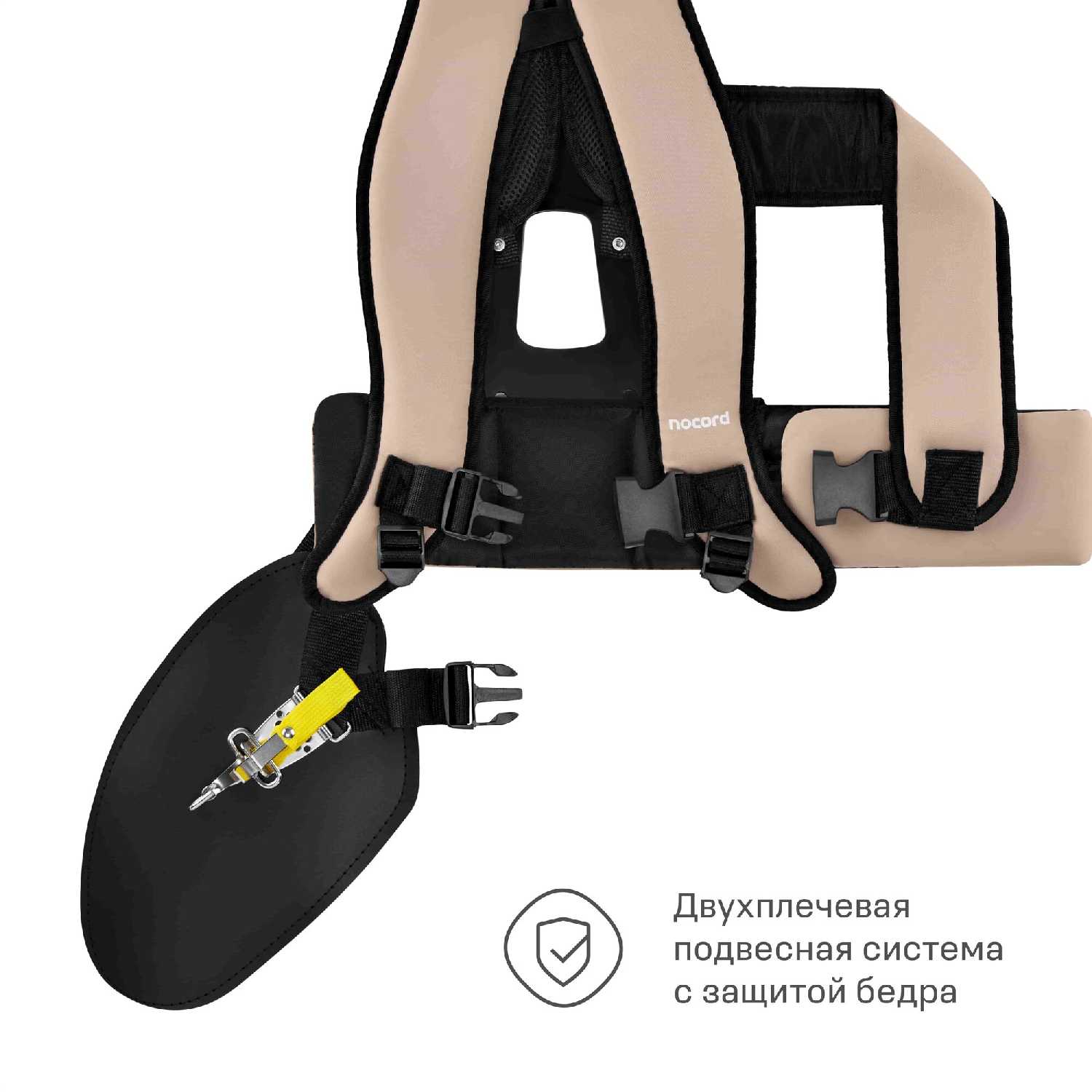 - Наплечный ремень с жесткой спинкой и паралоновой подкладкой равномерно распределяет вес (до 6 кг), минимизируя усталость спины.