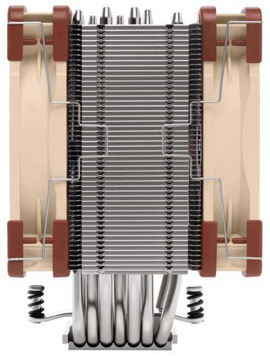 - Двойные радиаторы с 6 тепловыми трубками Ø6 мм и смещенным центром снижают затенение вентиляторов, улучшая продув.