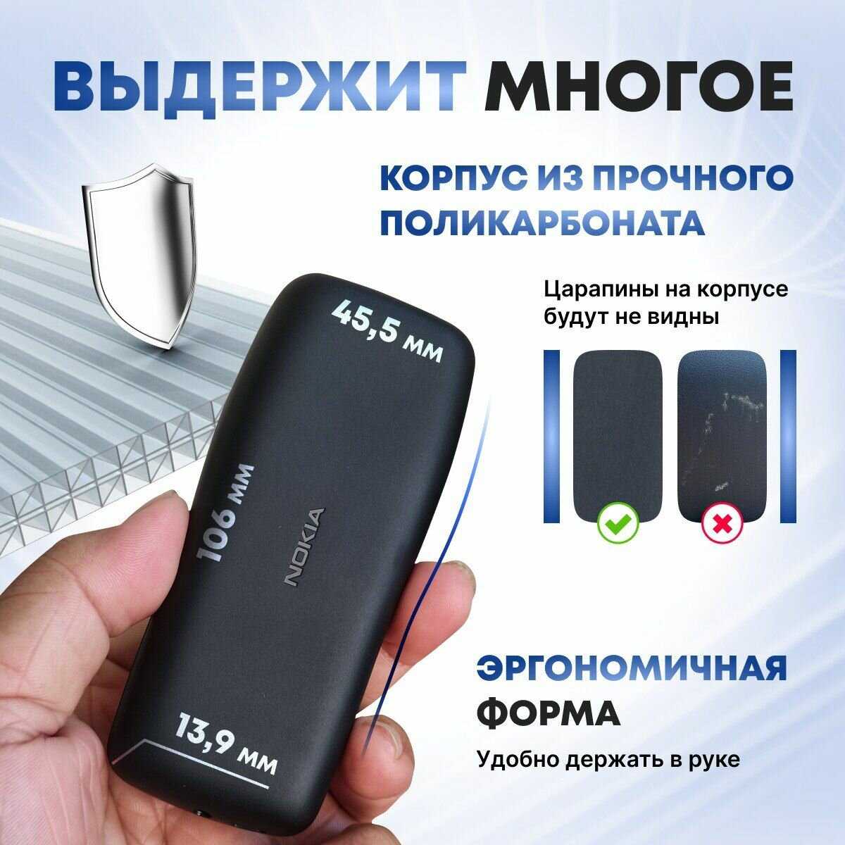 Телефон прочный, как и ожидается от Nokia, и часто выживает после падений без повреждений. Пользователи делятся историями, как после случайного падения аппарат продолжал работать, а пластик и сборка выдерживали удары у детей или в лагере. Однако в отдельных случаях пластик низкого качества — гнездо зарядки смещается, или телефон ломается через неделю. Некоторые экземпляры царапаются легко, а общая сборка кажется хлипкой по сравнению с классическими Nokia. Для запасного или детского телефона это преимущество, но надежность варьируется по моделям. -
