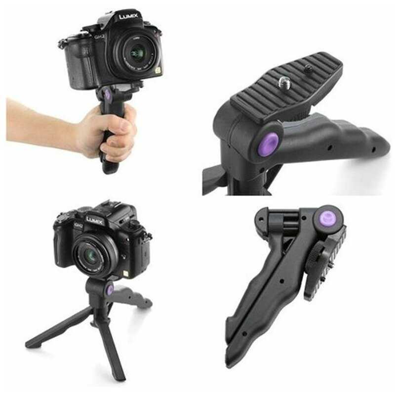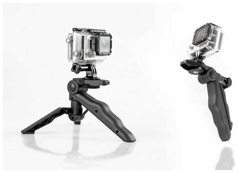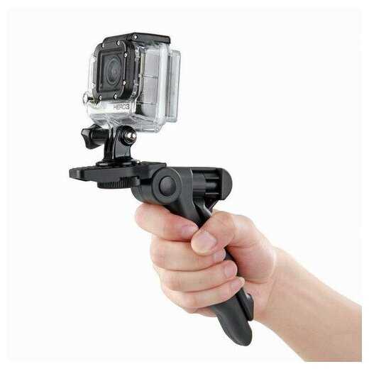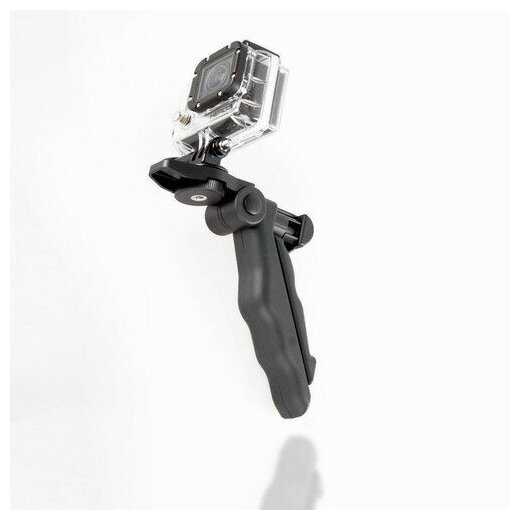 - + Очень удобное приспособление. По сути и ручка для камеры и миништатив одновременно, в зависимости от желания. Кстати, можно установить и обычную мини камеру стандартного типа. Устройство это позволяет. В качестве штатива стоит очень крепко на ровной поверхности.